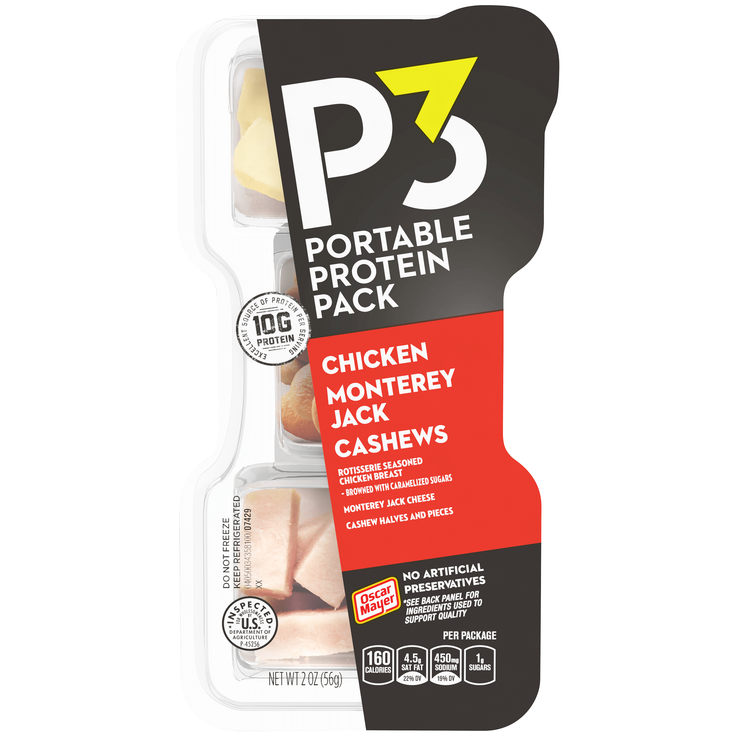 Oscar Mayer P3 Chicken, Cashews and Monterey Jack Portable Protein Packs shake up your snacking routine with a deliciously convenient protein snack...