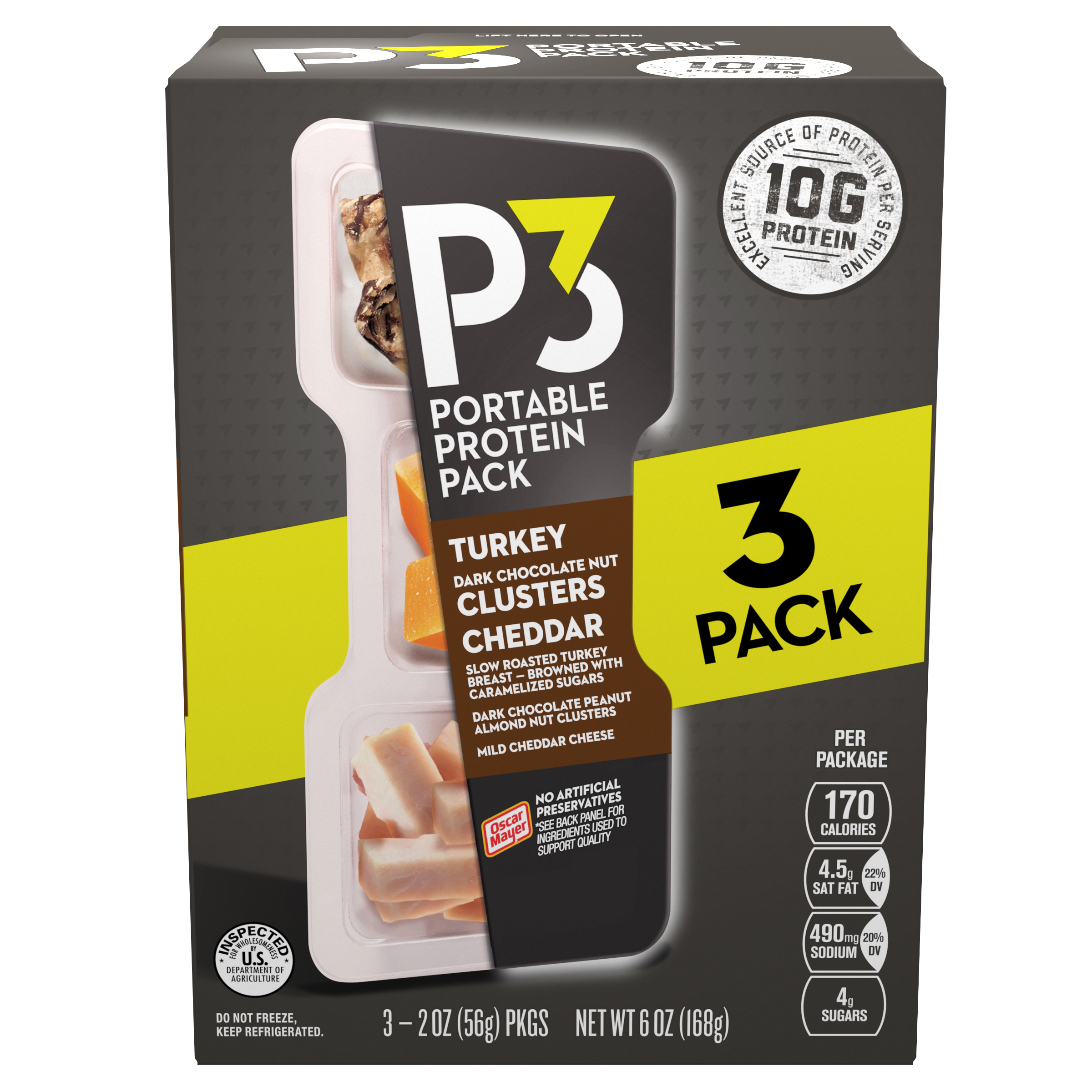 Oscar Mayer P3 Turkey, Ham and Cheddar Portable Protein Packs shake up your snacking routine with a deliciously convenient protein snack pack. Each...